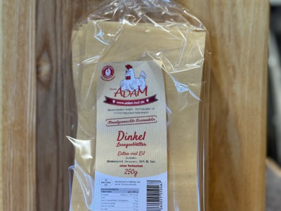 Sie bekommen Lasagneblätter aus Dinkel mit einem hohen Eianteil. Die Blätter bringen eine stabile Struktur und bleiben beim Backen formtreu. Der Dinkel sorgt für einen runden Geschmack und eine leichte Nussnote.